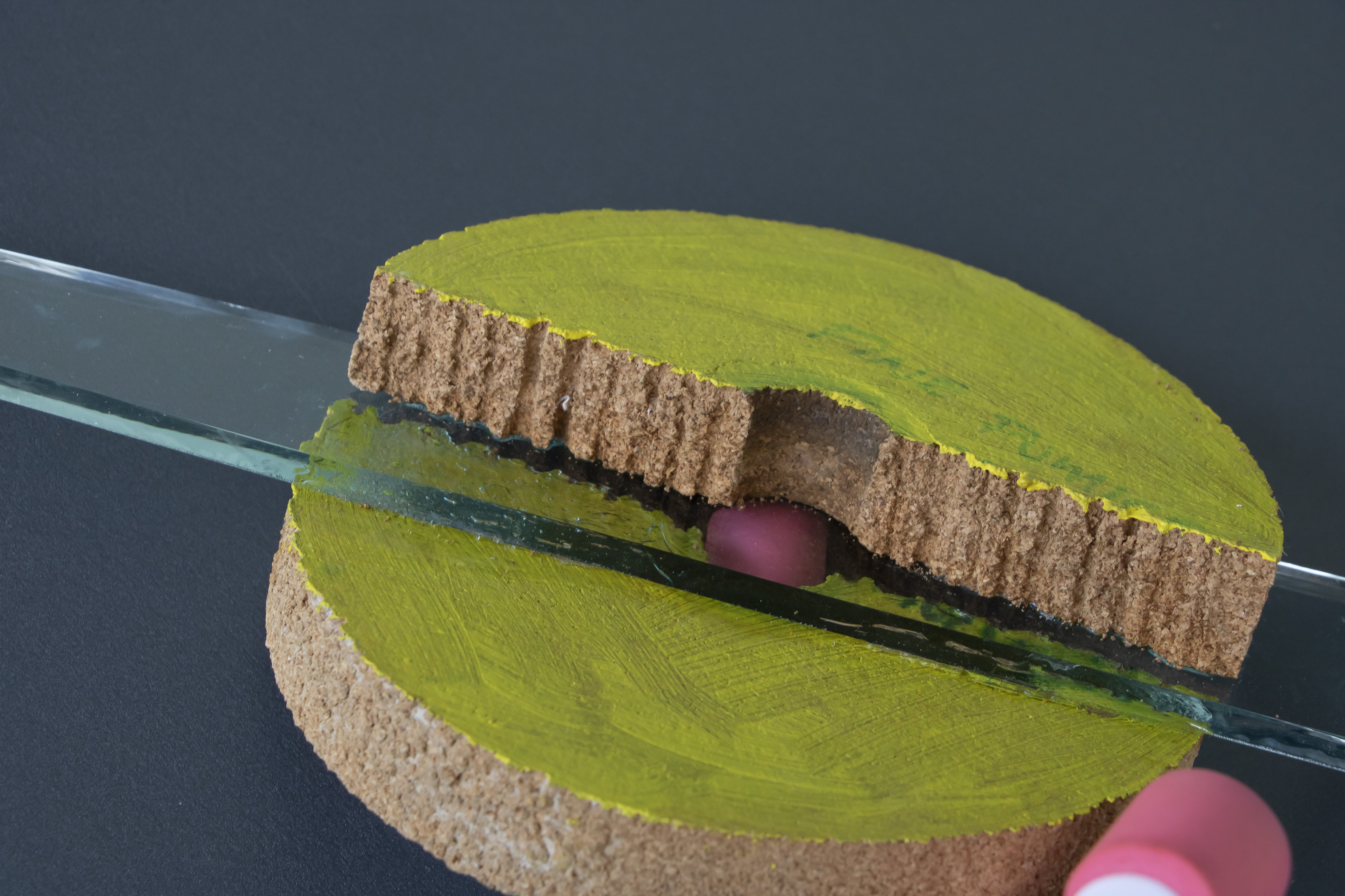 wood, glasst, corq, plastic, strings, plastic tape